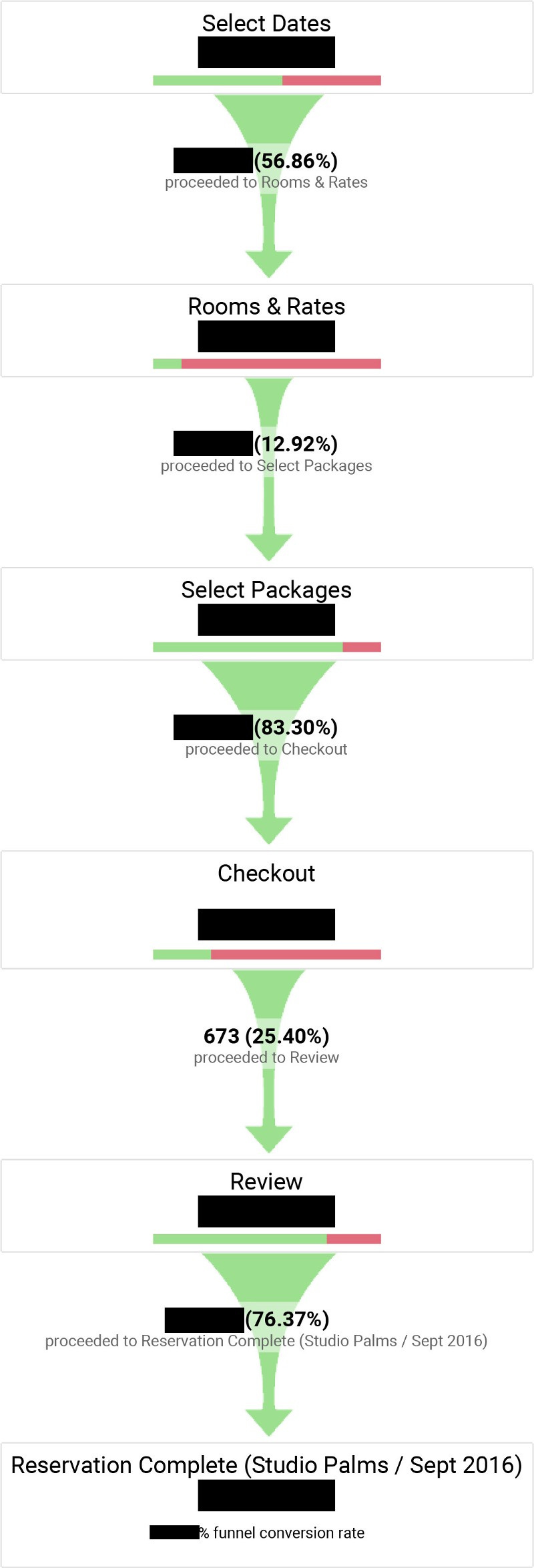 The example below is for the true data lovers. Using Google Analytics we can assess success and drop-off rates for things we want users to do. Using this info we can optimize screens and track how our changes affect conversion rates.
