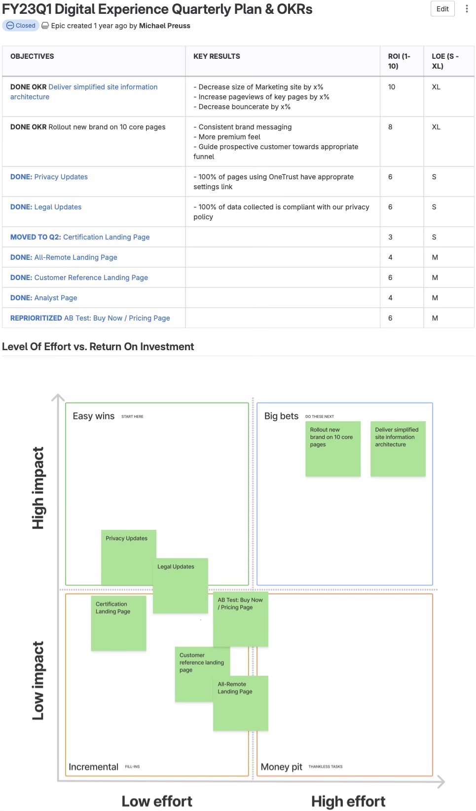 FY23Q1 Digital Experience Quarterly Plan & OKRs