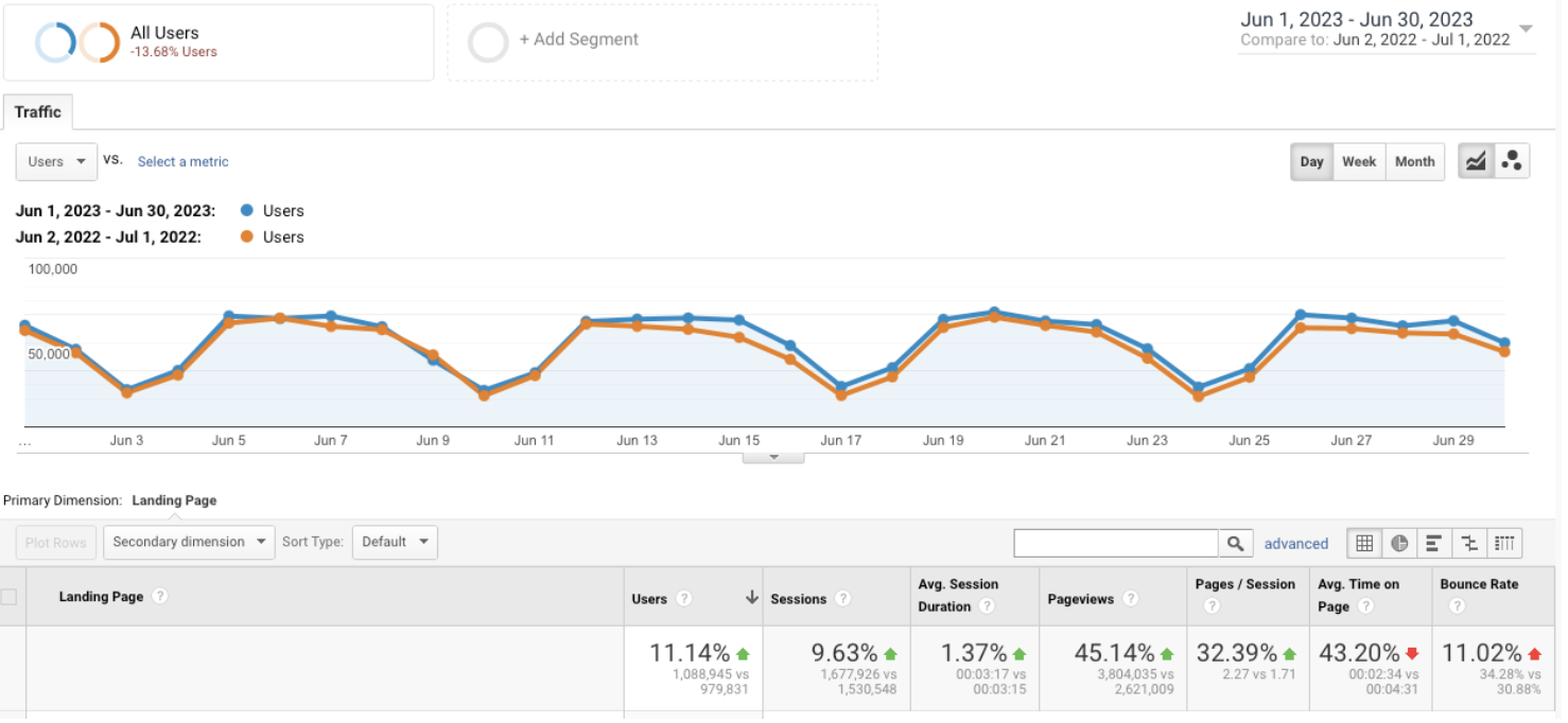 - Second quarter: sessions +12% and pageviews +9%.