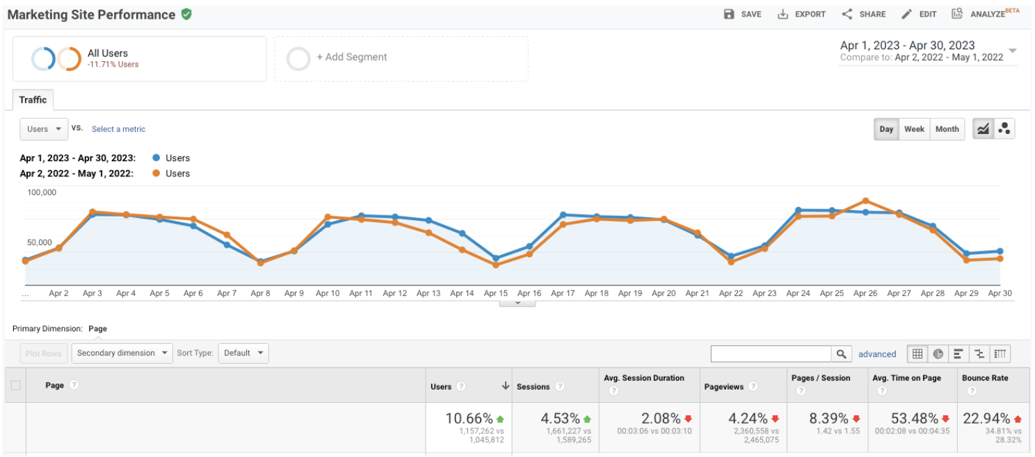 Reversing a multi-year marketing site traffic decline