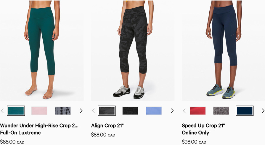 Internal brand and merchant teams believed that "crops" was more on-brand than "capris." However, a Google Images search for "crops" indicated that lululemon's definition of crops did not align with the common understanding.
