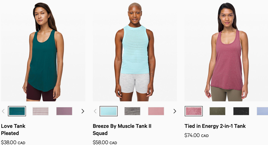 Let’s have some fun with one more example. Internal merchant teams decided that ‘tanks‘ was more on brand than ‘tank top‘