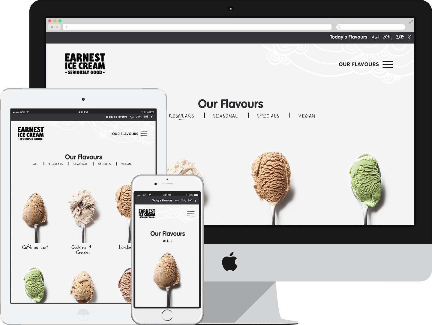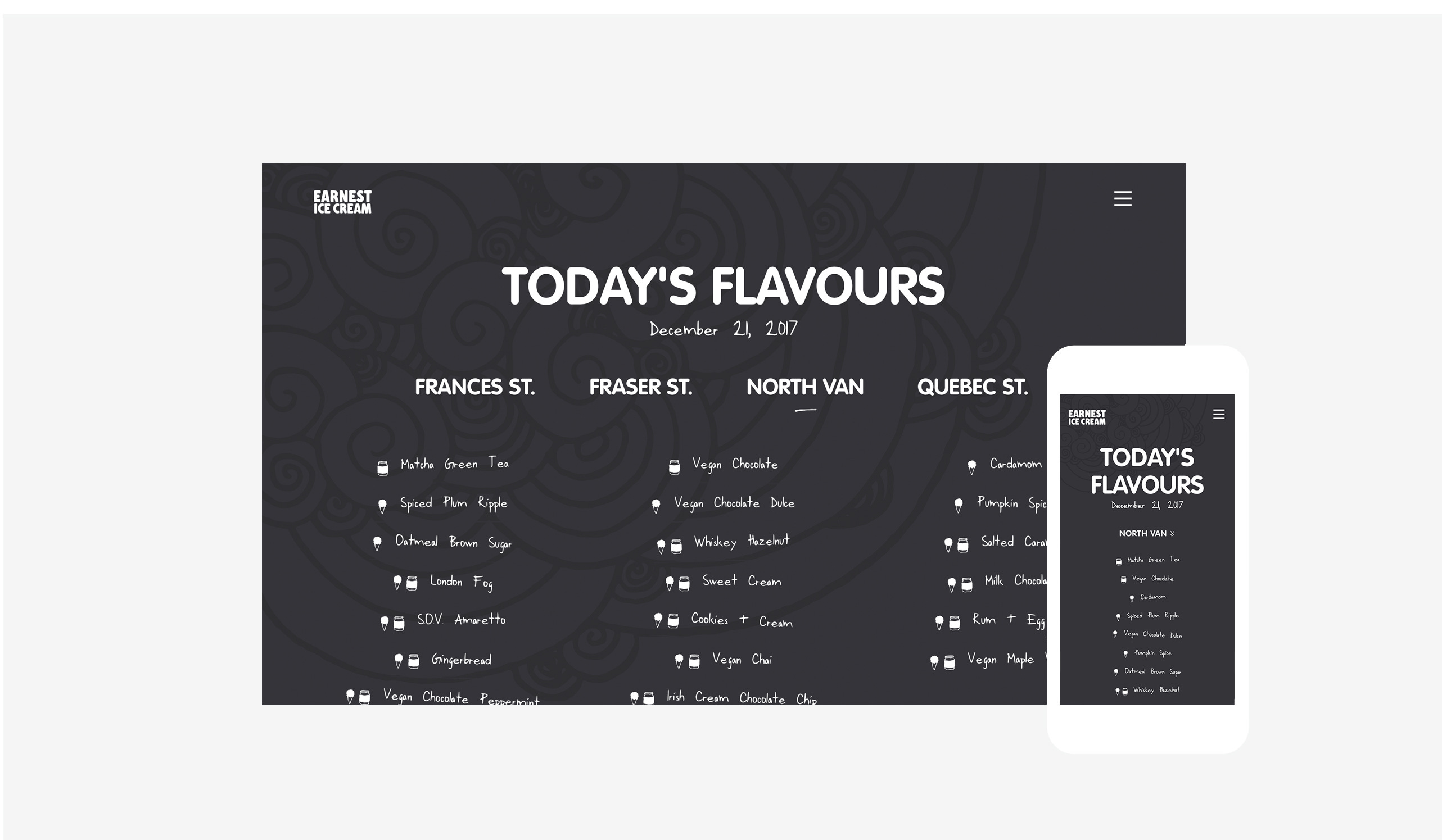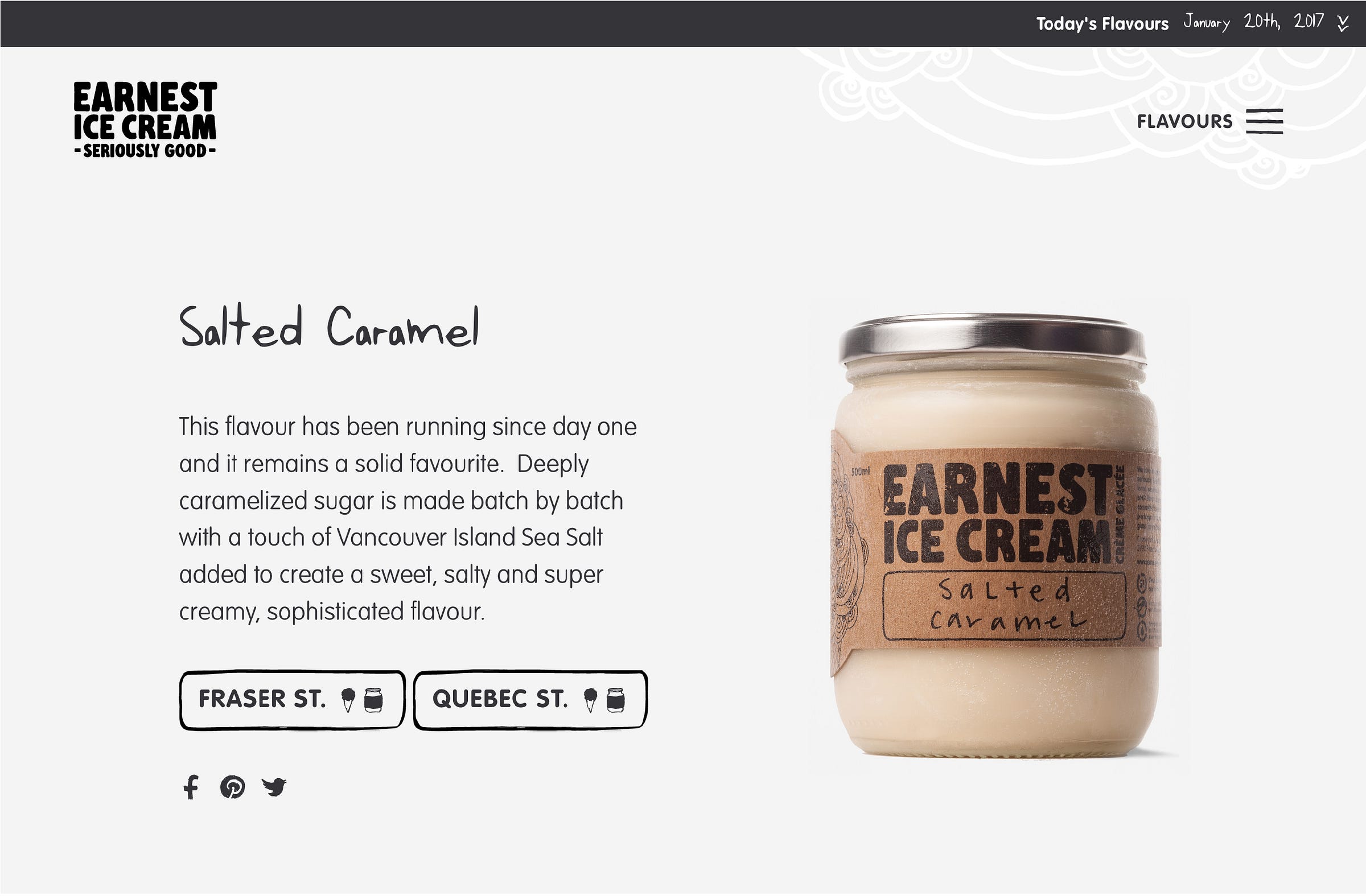 Built a daily flavour board that staff could update across locations, shipped a locator with geolocation and maps, and carried the brand into the site with a custom typeface.