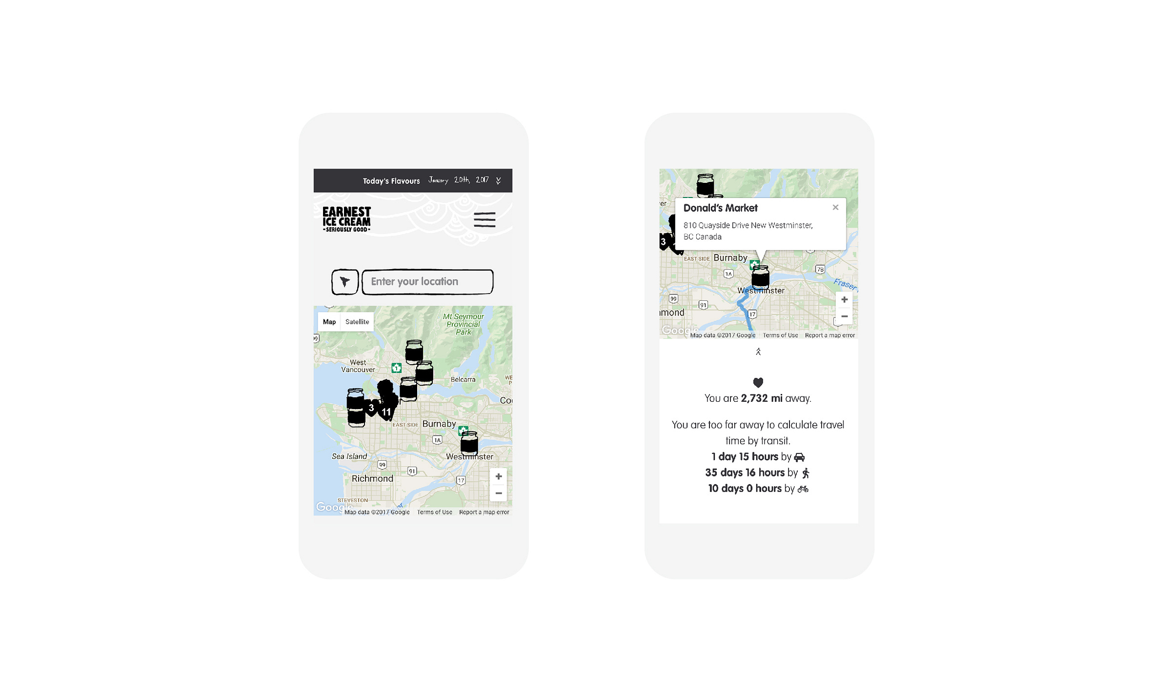 - An ice cream locator using HTML5 geolocation and Google Maps to reduce friction for in-person visits.